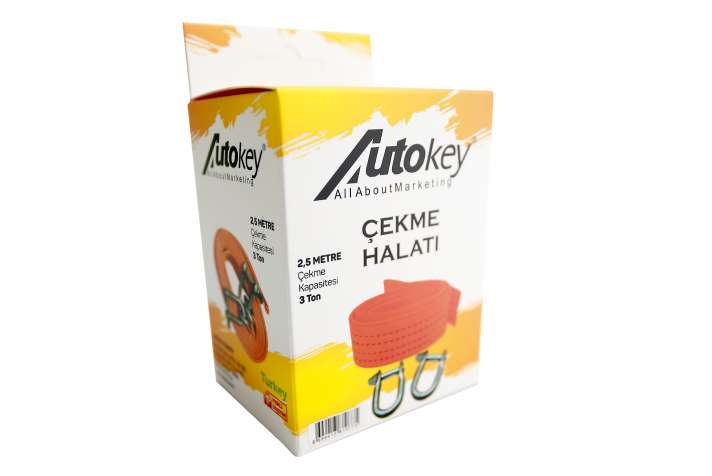 Araç Çekme Halatı Kumaş Çelik Puntalı ( 3 Ton ) ( 2.5 Metre ) Güçlü örgülü halatı ile maksimum 3 ton çekebilir. 2.5 metredir. Çelik puntalı çekme halatının güçlü bağlantı noktaları sayesinde güvenli ve pratik kullanım sağlar.